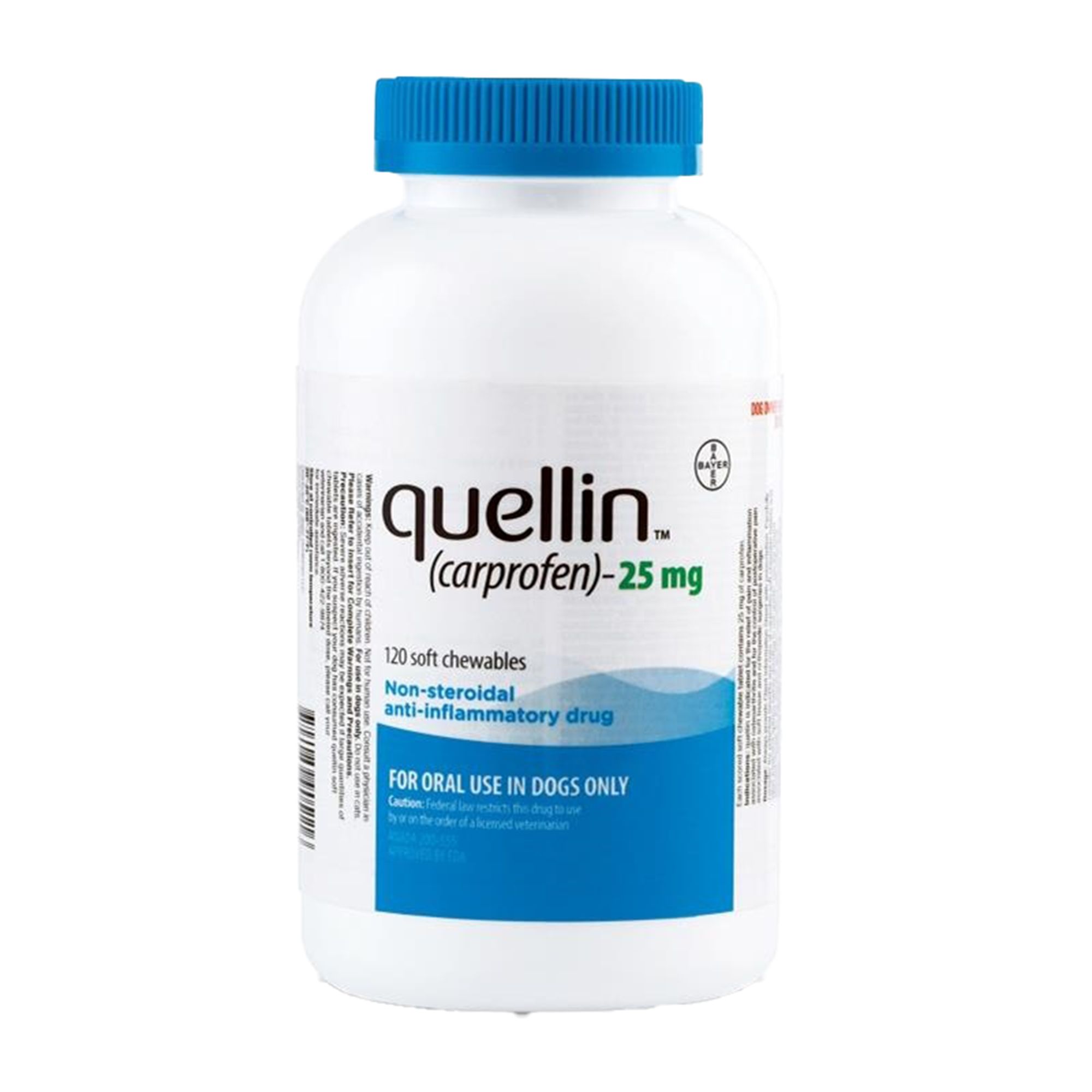 Quellin is a non-steroidal anti-inflammatory drug NSAID treatment that is indicated for the relief of pain and inflammation associated with osteoarthritis and for the control of postoperative pain associated with soft tissue and orthopedic surgeries in dogs. 25mg 75mg and 100mg. Quellin is a prescription drug for dogs.